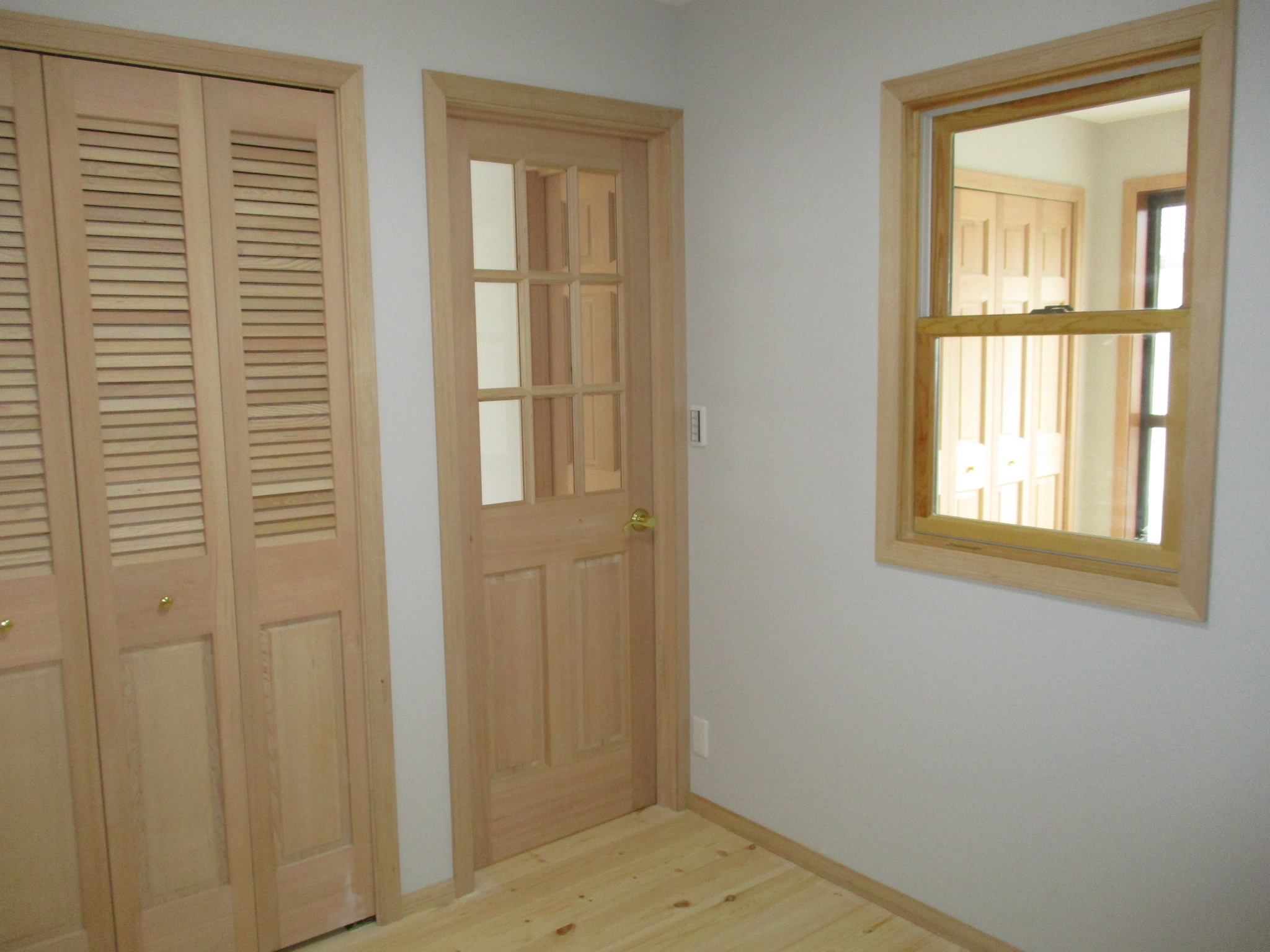 全室ドライウォール・無垢材のフローリング(パイン・オーク)・木製室内ドア・無垢材モールディング・アンダーセン木製サッシ・ナスラックバゼロキッチン等が見学できます。是非お立ち寄りください。